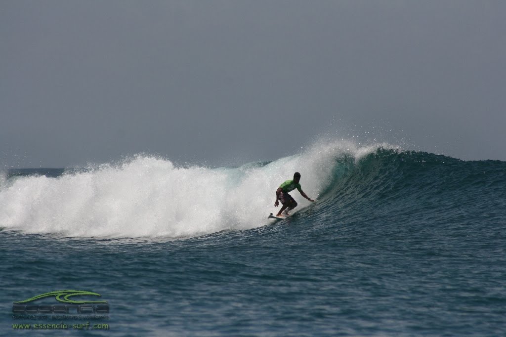 Seguíamos em direcção ao pico escolhido. Por vezes a escolha recaía no pico com ondas razoáveis mas menos crowd… não interessava nada ir para a água e ter um monte de gente a tentar apanhar as mesmas ondas. Quando o Dhoni se aproximou do pico para nos deixar a sensação de agitação que pairava no ar era extrema… o agarrar na prancha e saltar apara aquela água quente…naquele tom de azul…não havia palavras que descrevessem a sensação.